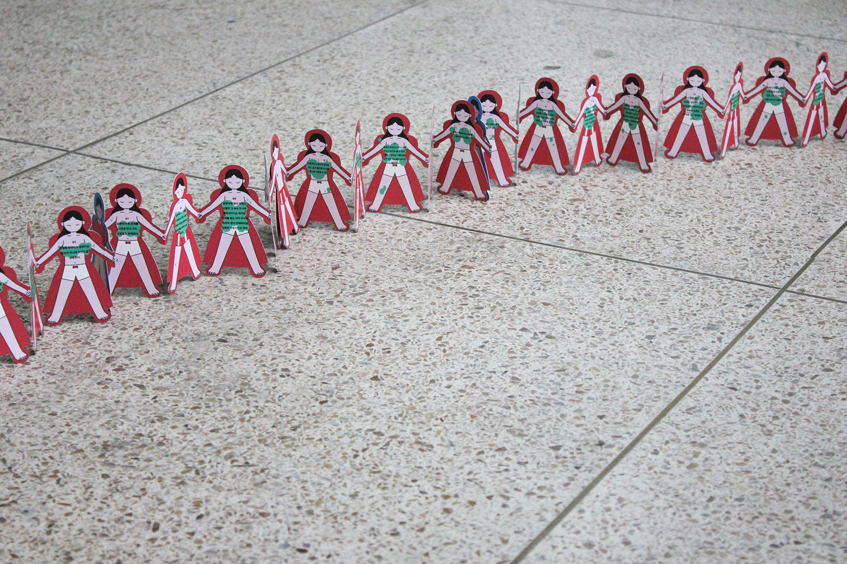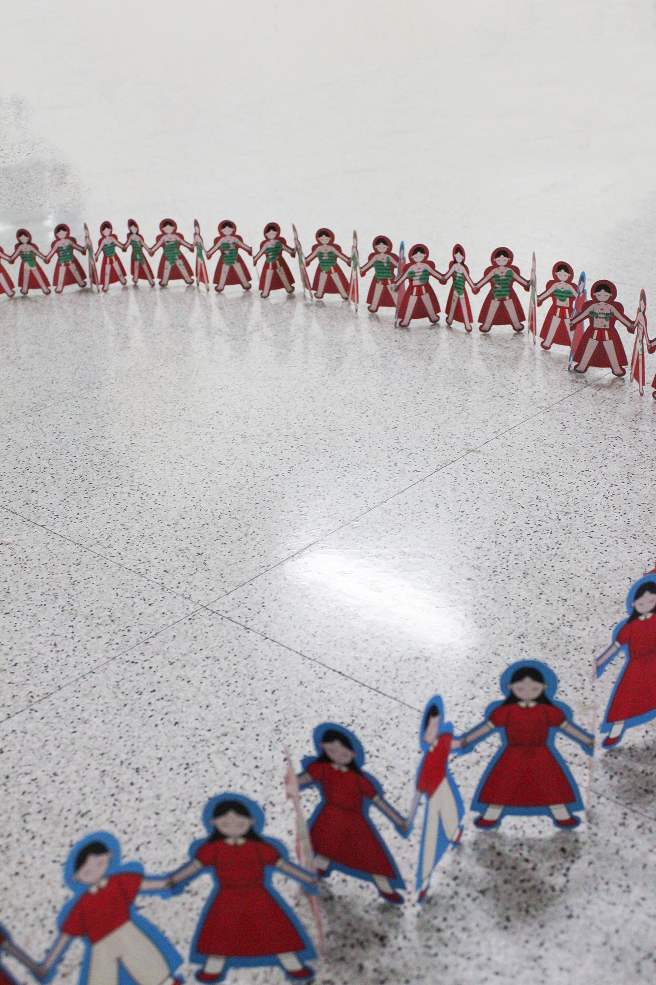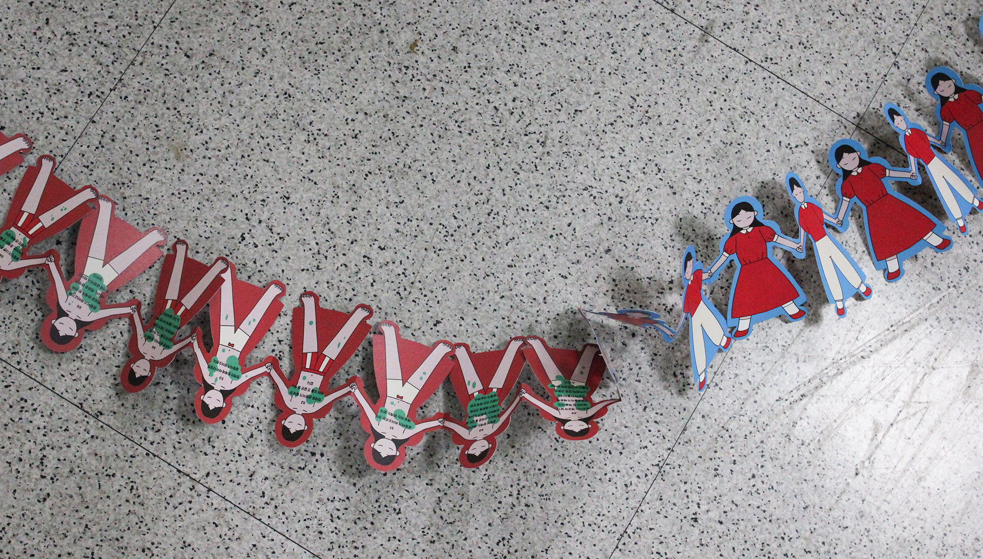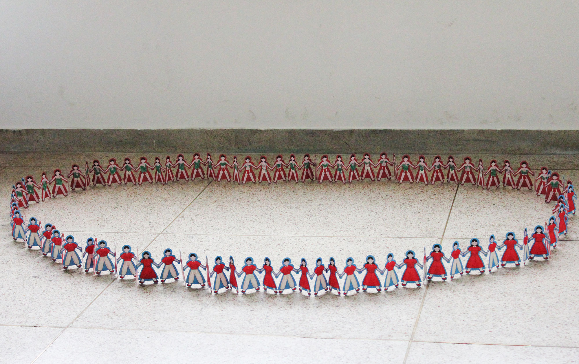 70*100 사이즈의 작은 크기는 마치 관계가 한 손에 들어오는 것 같은 느낌을 주지만 이를 펼치면 끝도 없이 펼쳐지며 7미터 이상의 장대한 길이가 되어 쉽게 통제할 수 있는 관계라고는 말할 수 없게 된다. 이 종이 인간 군집의 끝과 끝을 이어 원을 만들면 안과 밖의 구분이 생기면서, 비로소 관계의 속내를 볼 수 있게 된다. 오로지 멀쩡한 밖만을 보려고 한다면 무엇이 문제인지 알 수 없다. 진정한 사실을 알려면 그 안, 내부를 봐야만 알 수 있다. 각각의 종이 인간들은 곰팡이가 피듯 해로워지는 관계에 대한 특징과 이유들을 각각 하나씩 담고 있다. 그들은 어떤 이야기를 하고 있는가. 어떤 이유로 그들에게 곰팡이가 피어났는가.