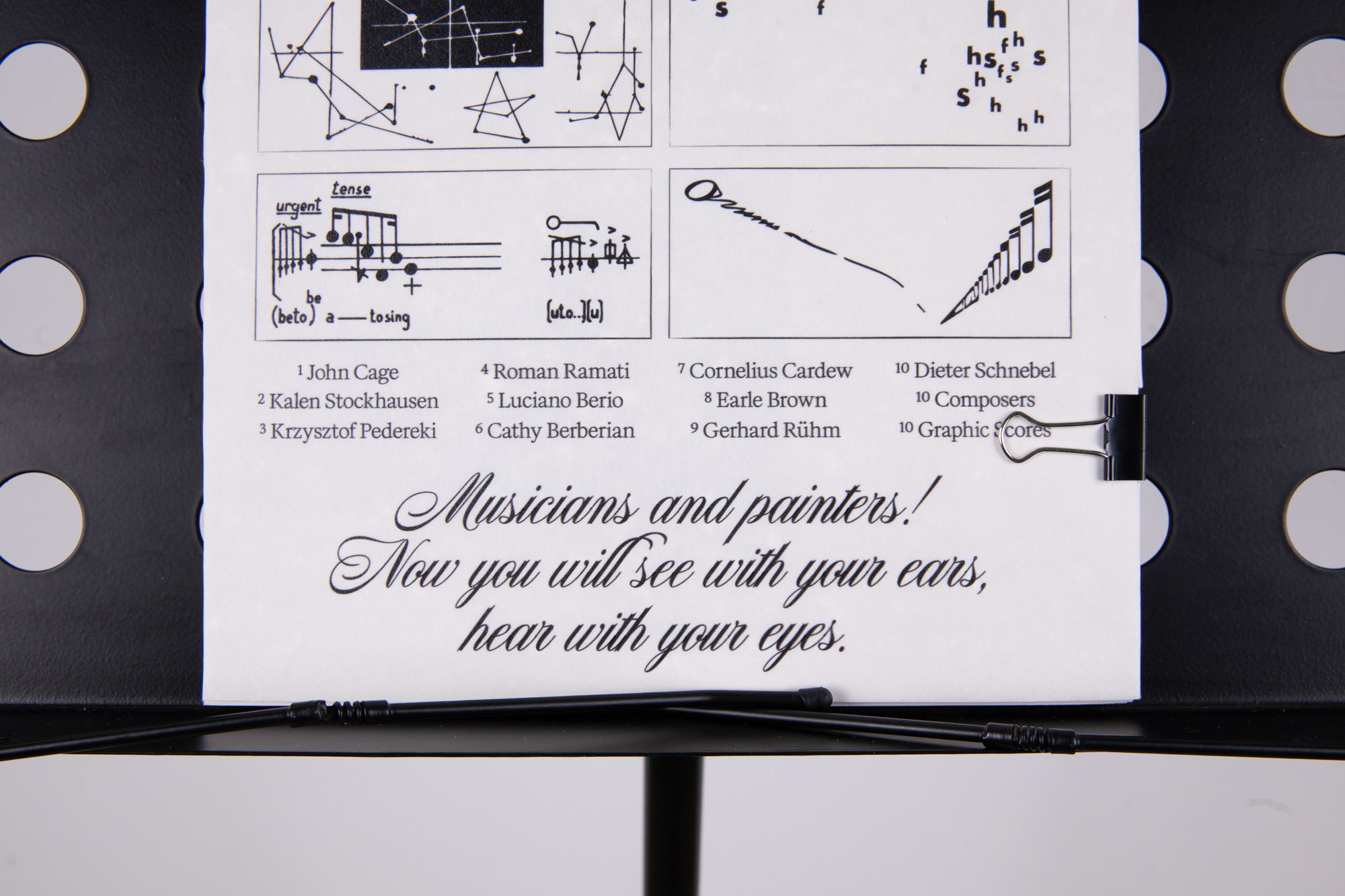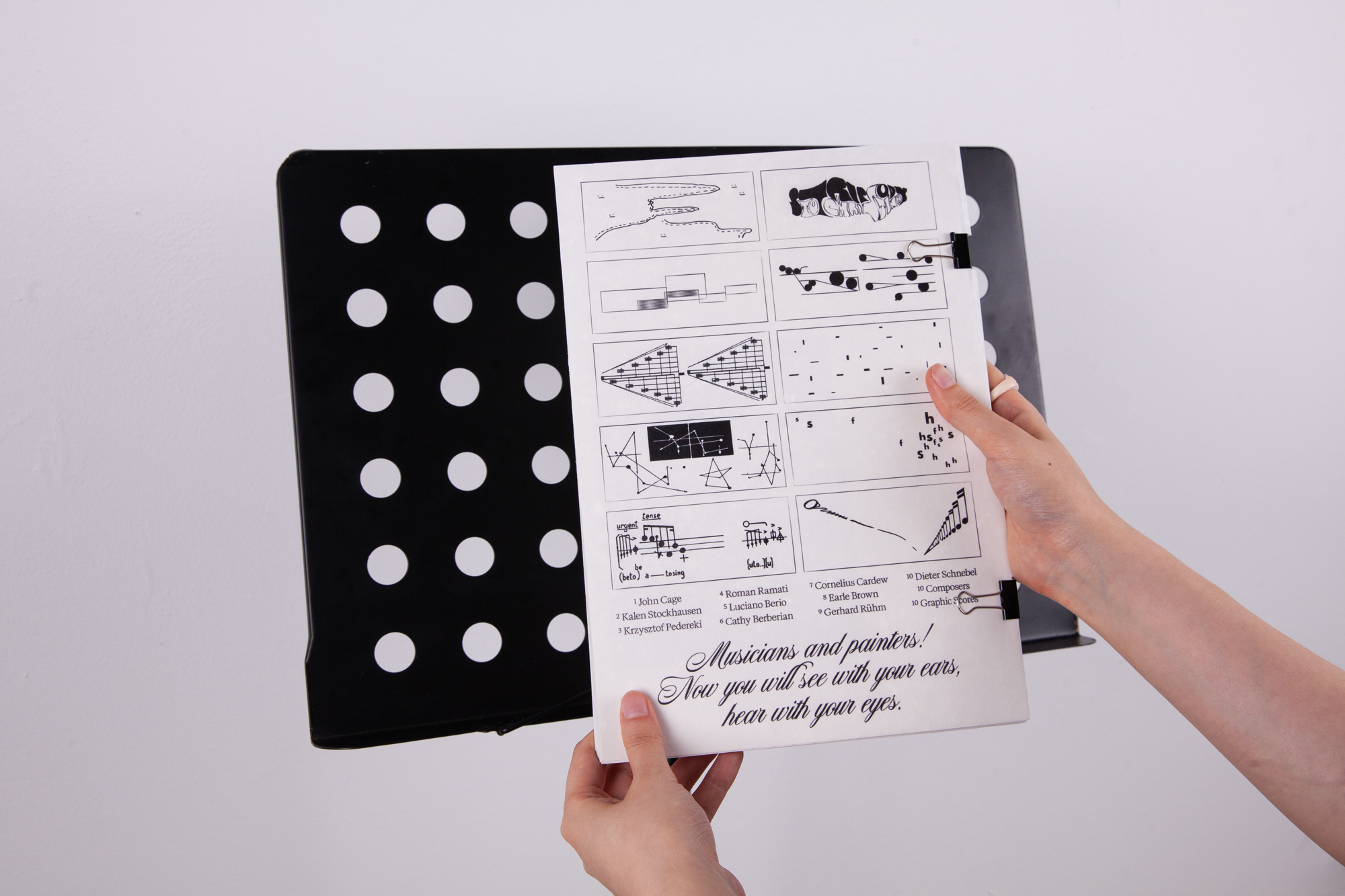 『Graphic Scores』는 20세기 중반에 출현한 그래픽 악보의 양상과 중심 작곡가 10명의 작품을 모은 책이다. 독자는 『Graphic Scores』에 있는 그래픽 악보를 ‘보고’, 머릿속에서 ‘음을 떠올리고’, 다양한 연주자들의 해석이 담긴 연주를 ‘들으며’ 각 단계에서 연상하는 소리를 비교해 볼 수 있다. 혹은 반대로, 음악을 듣고 기존 악보에 담긴 그래픽과 독자가 떠올린 음향의 상을 비교해 볼 수도 있다. 악보를 봄과 동시에 상상하고, 듣고, 비교해 볼 수 있다는 것이 이 작업의 특징이다. 이 과정을 통해 『Graphic Scores』는 이미지와 소리 ‘사이’의 작용에 대해 접근한다. 전통 기보 체계의 한계와 이에 대한 해결책으로 20세기 작곡가들이 내놓은 대안을 재조명하여 음악에서 소외되던 시각적 요소를 앞세운다. 본다는 것과 듣는다는 것이 본질적으로 무엇인지 고찰하며 이미지와 소리는 분리되거나, 종속되거나 우열관계에 놓인 것이 아닌 상호 교차적으로 작용하는 것임을 보여준다.