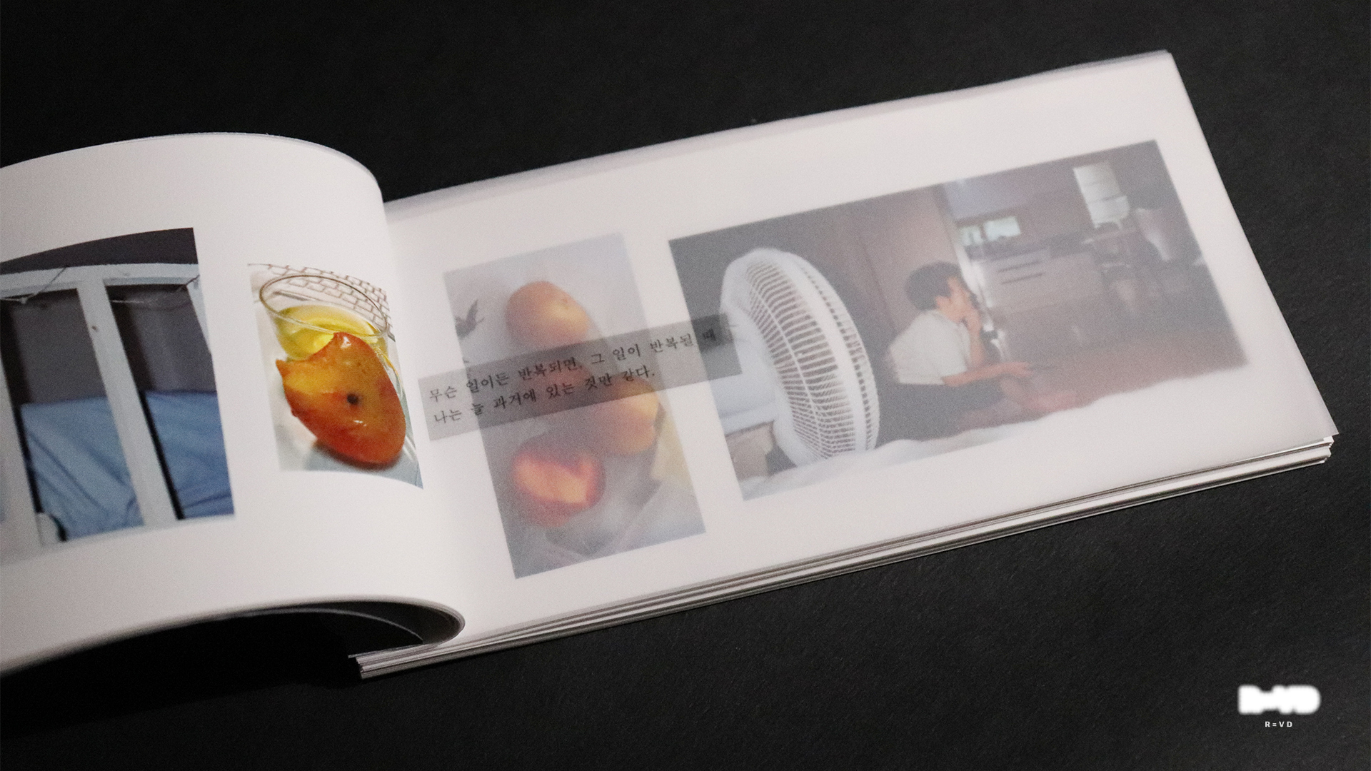 ‘R=VD’는 생생한 꿈이 된 현실을 담은 기록이다. 스마트 폰 갤러리를 기준으로 책의 판형이 짜여졌고 2021~2023의 기록을 담았다.