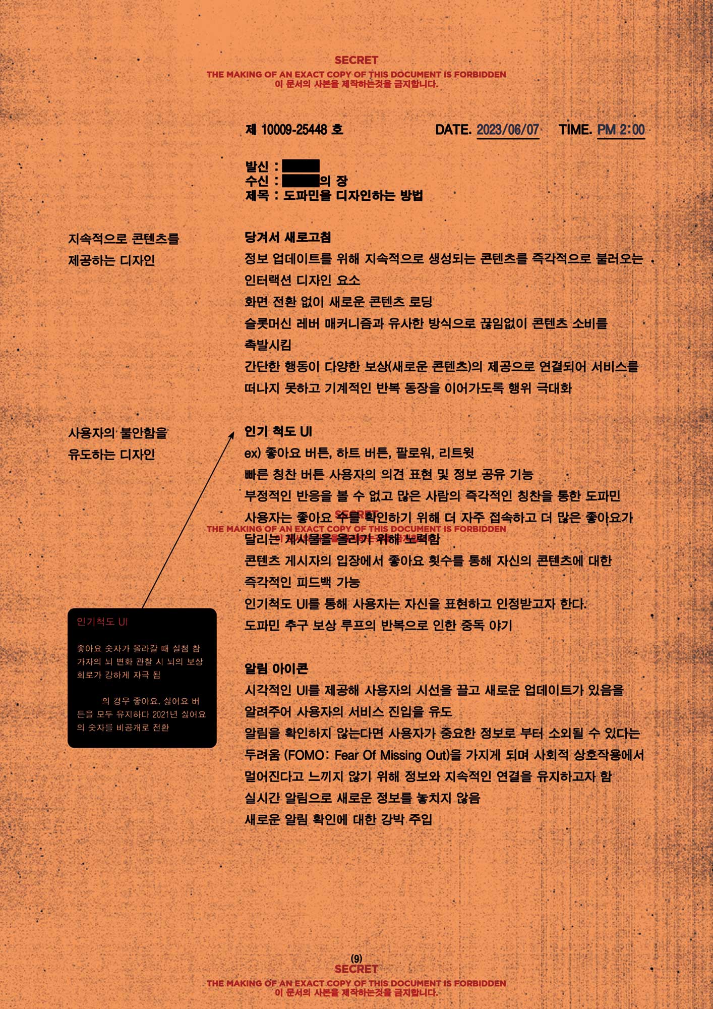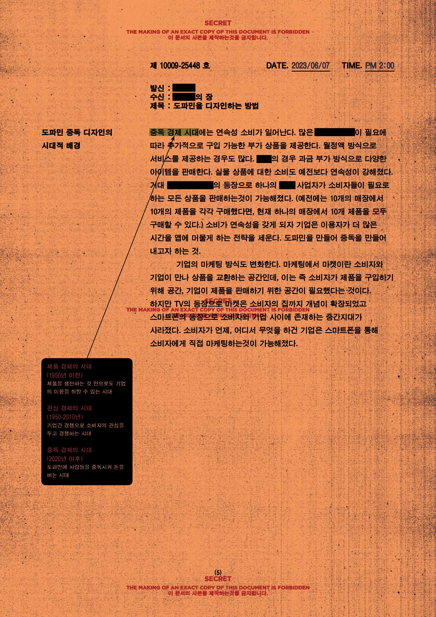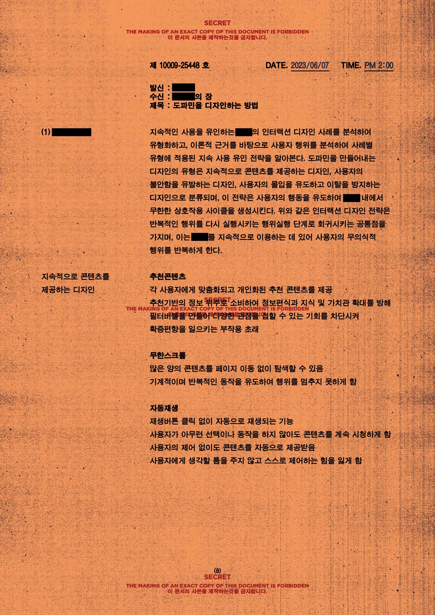 <도파민 중독을 디자인하는 방법>, 2023. 문서, A4 25p.
